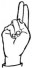 На ћирилици написано АНДРИЈА МЕЋАВА састоји се из 13 слова [?]. Исписано ћириличном једноручном азбуком за глувонеме: